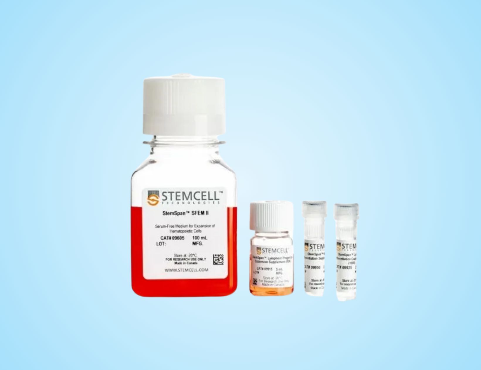 StemSpan™ Lymphoid Progenitor Expansion Supplement (10X) contains a combination of recombinant human cytokines and other additives formulated to selectively promote the expansion and differentiation of CD34+ cells isolated from human CB and BM samples to lymphoid progenitor cells when used in combination with StemSpan™ SFEM II medium, and plates coated with