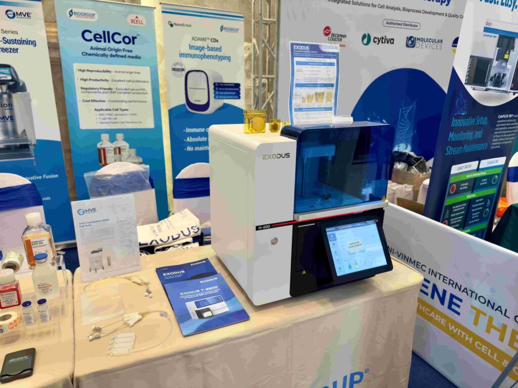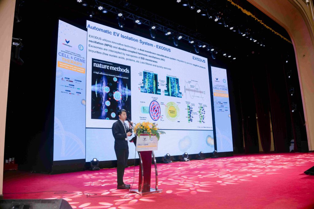 Đại diện EXODUS và Biogroup, ông Zheng Zhuang (Regional Manager, APAC) đã có phần trình bày chuyên sâu về công nghệ tách chiết exosome chất lượng cao phục vụ y học tái tạo. Hệ thống phân lập exosome tự động EXODUS mang lại hiệu suất và độ tinh khiết vượt trội, không dùng hóa chất đánh dấu (label-free), vận hành tự động và ổn định, giúp các chuyên gia mở rộng ứng dụng liệu pháp exosome, đáp ứng chuẩn mực mới của thị trường.